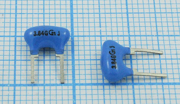 Керамические резонаторы 3.84МГц с двумя выводами, голубые, пкер 3840 C09x5x07P2\50003000/ -20~80CCSA3,84MG2P