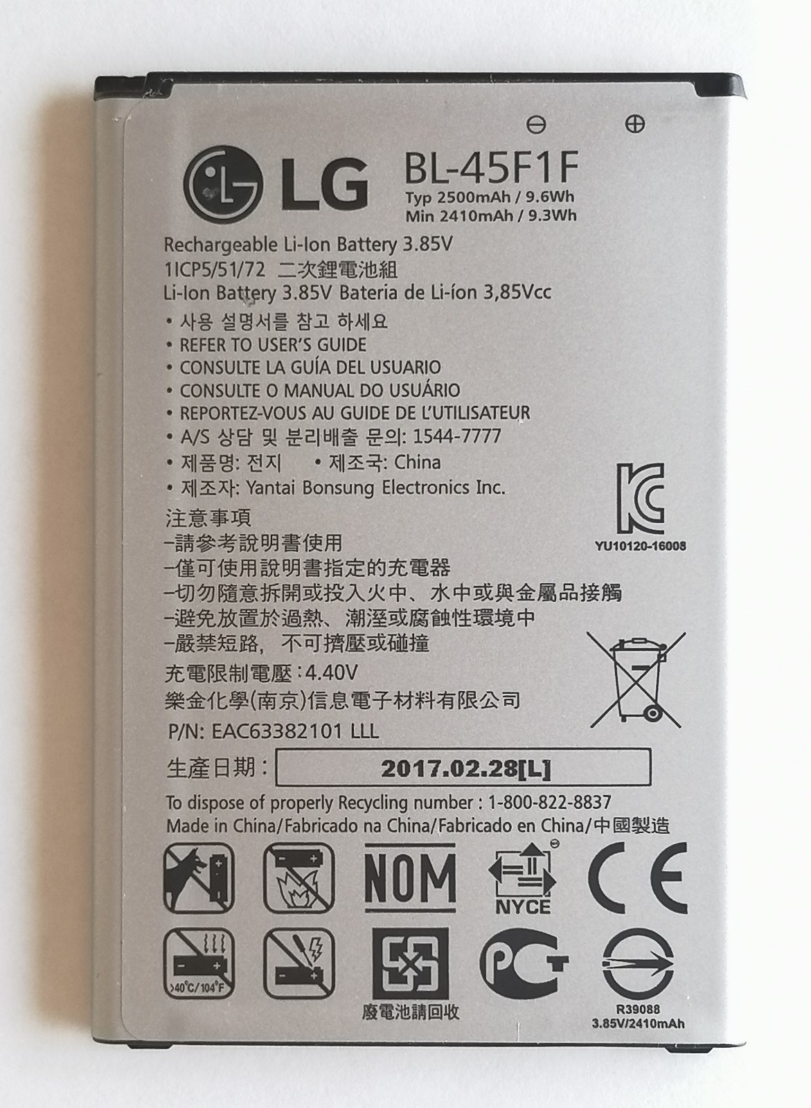 LG K8 (2017) X240 Аккумулятор (снятый, оригинал)