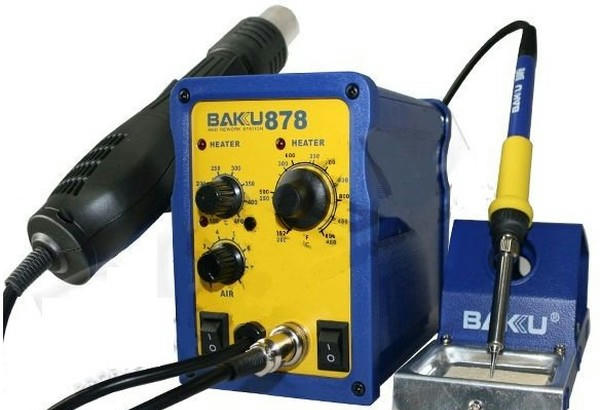 BAKU BK-878 – это мощная антистатическая термовоздушная паяльная станция, которая предназначена для операций по монтажу и демонтажу всего спектра SMD компонентов, включая DIP, SOIC, CHIP, QFP, BLCC, BGA, и др. Температурный диапазон паяльной станции BAKU BK-878 составляет 100 — 450 ?C.